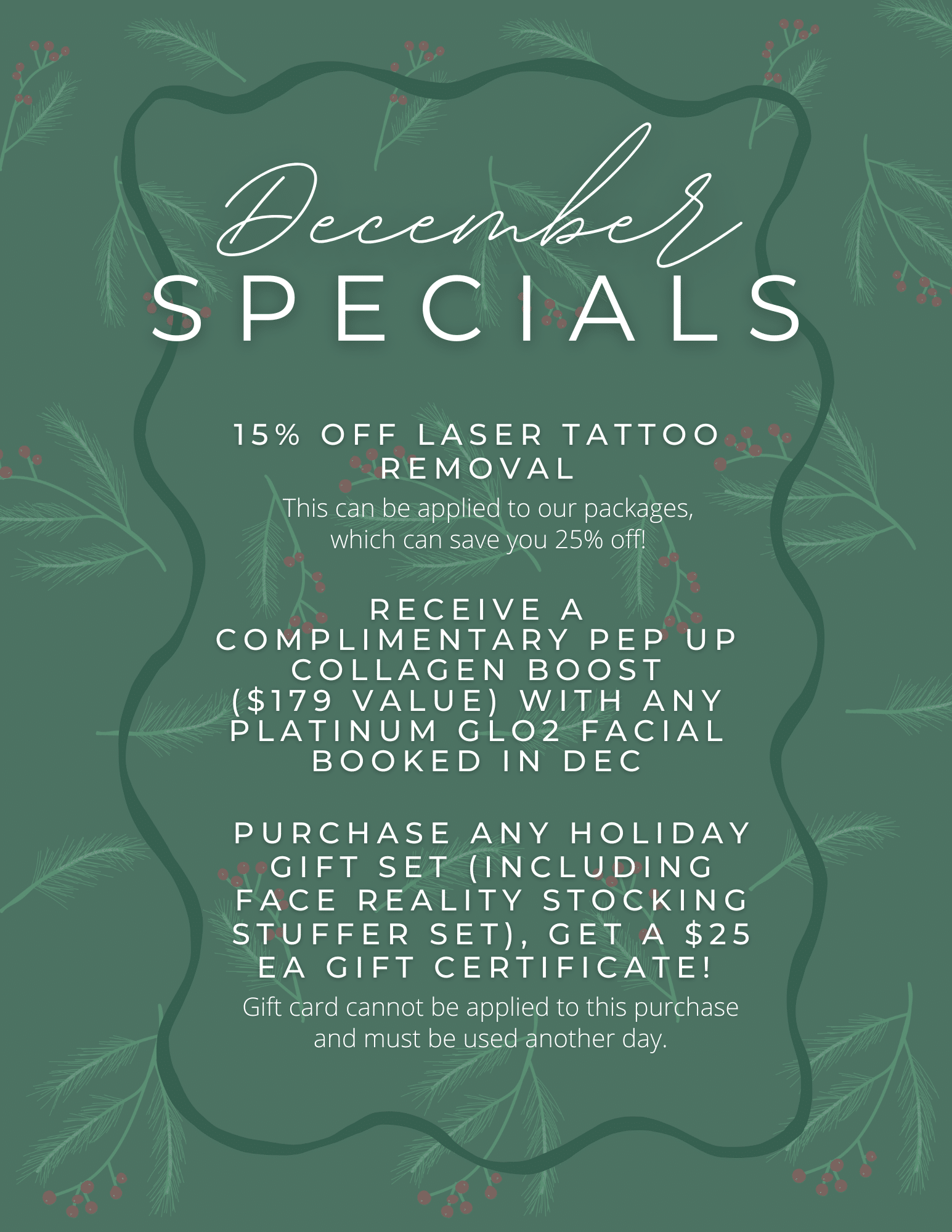 Purchase any holiday gift set (including the Face Reality Stocking Stuffer Set) and get a $25 Elevated Aesthetics gift certificate to use on a future visit.