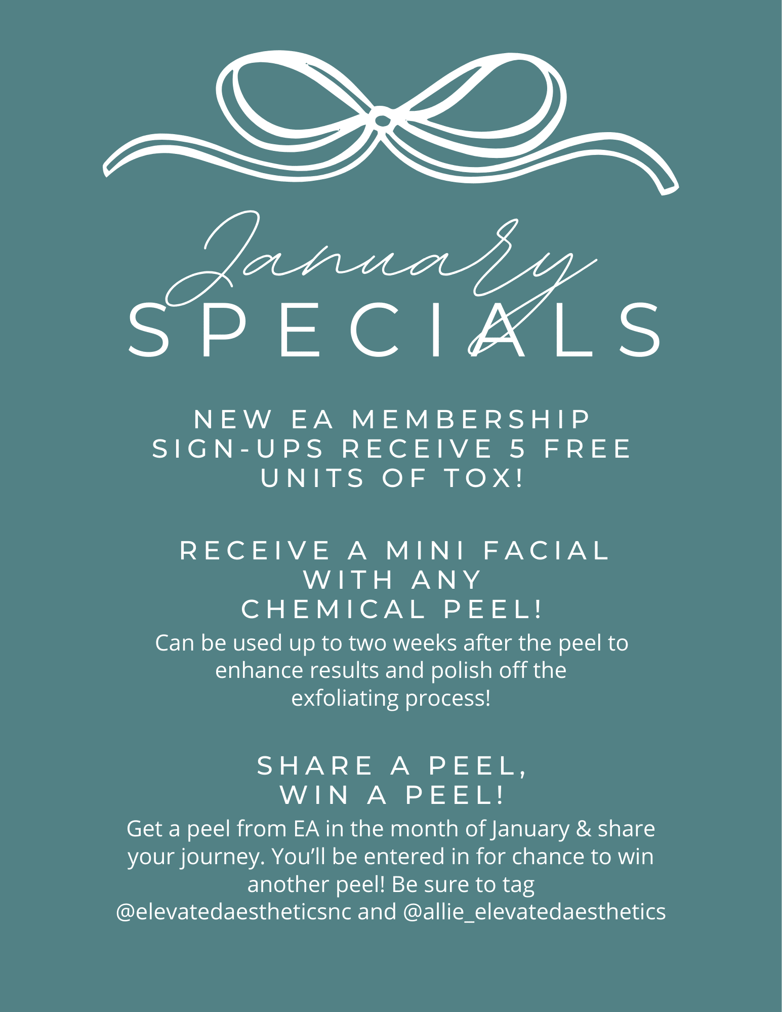 January Specials Snag your specials here: https://elevatedaestheticsnc.myaestheticrecord.com/online-booking